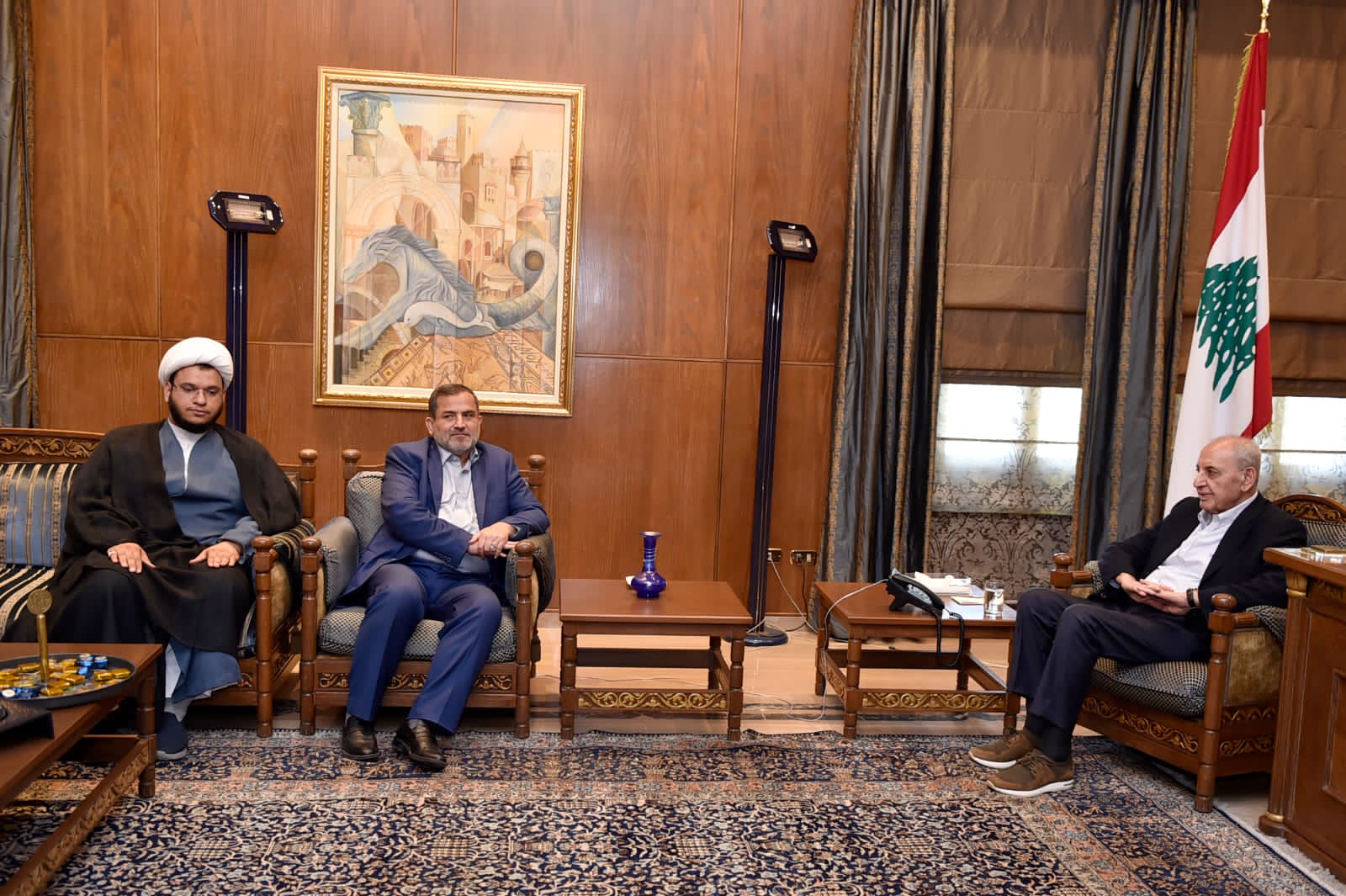 الرئيس بري تابع الاوضاع العامة والمستجدات السياسية والميدانية خلال استقباله رئيس كتلة الوفاء للمقاومة ووفد من نواب الكتلة ، ومسؤول العلاقات الدولية في المجمع العالمي لأهل البيت