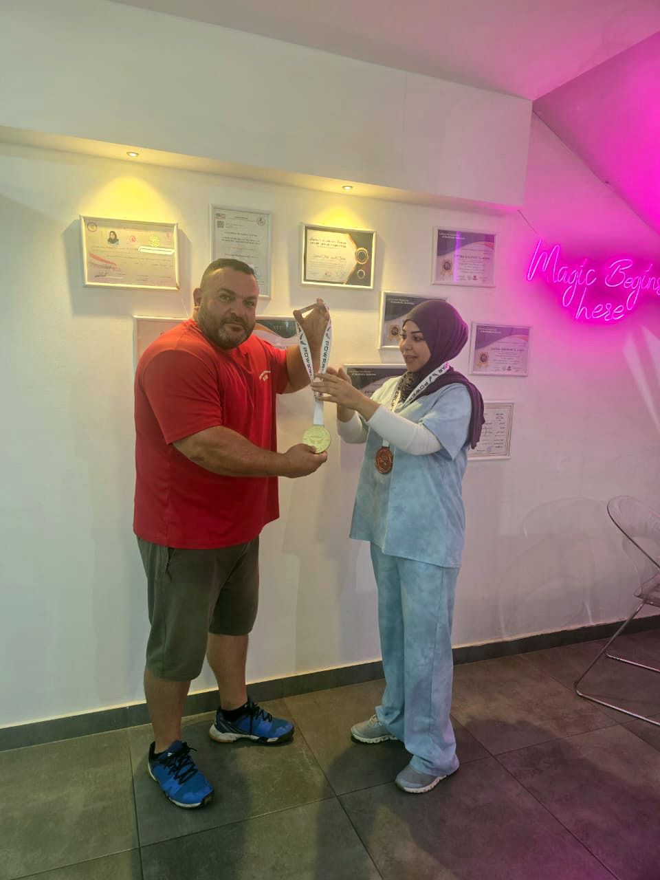 البطل خضر السن أهدى السيدة فاطمة البابا  فوزه ببطولة غرب آسيا برفع الأثقال