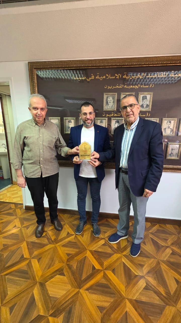 رئيس جمعية المقاصد الخيرية الإسلامية في صيدا الأستاذ فايز البزري يكرّم الموظفَين السابقَين رغيد مارديني وأحمد الإبريق تقديراً لجهودهما المخلصة وعطائهما خلال فترة عملهما في الجمعية.