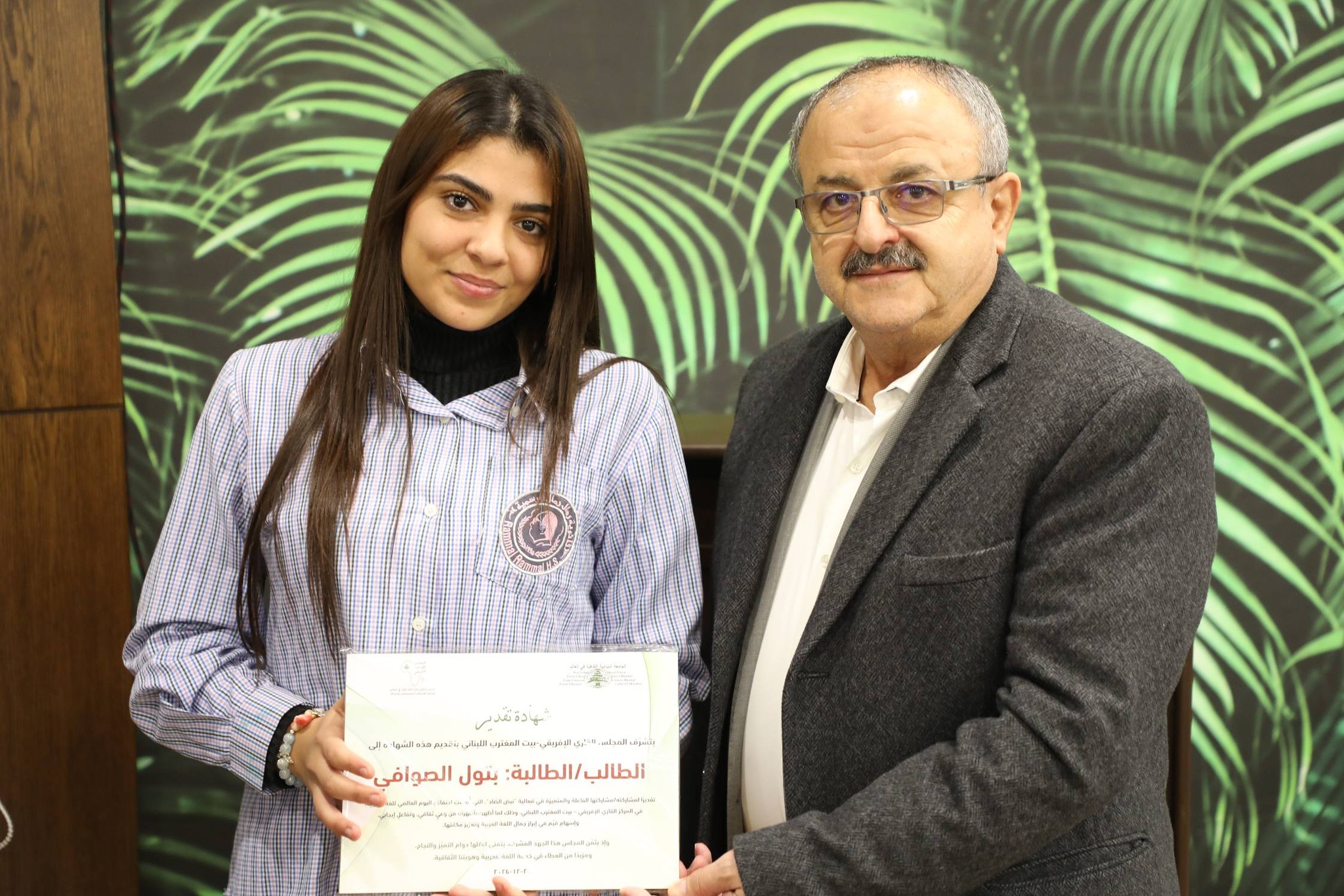 وفي الختام، قلّد الحاج عماد جابر لجنة التحكيم درع المجلس الأفريقي اللبناني، ووزّع الشهادات التقديرية على المدارس والطلاب المشاركين، تقديرًا لجهودهم وإبداعاتهم.